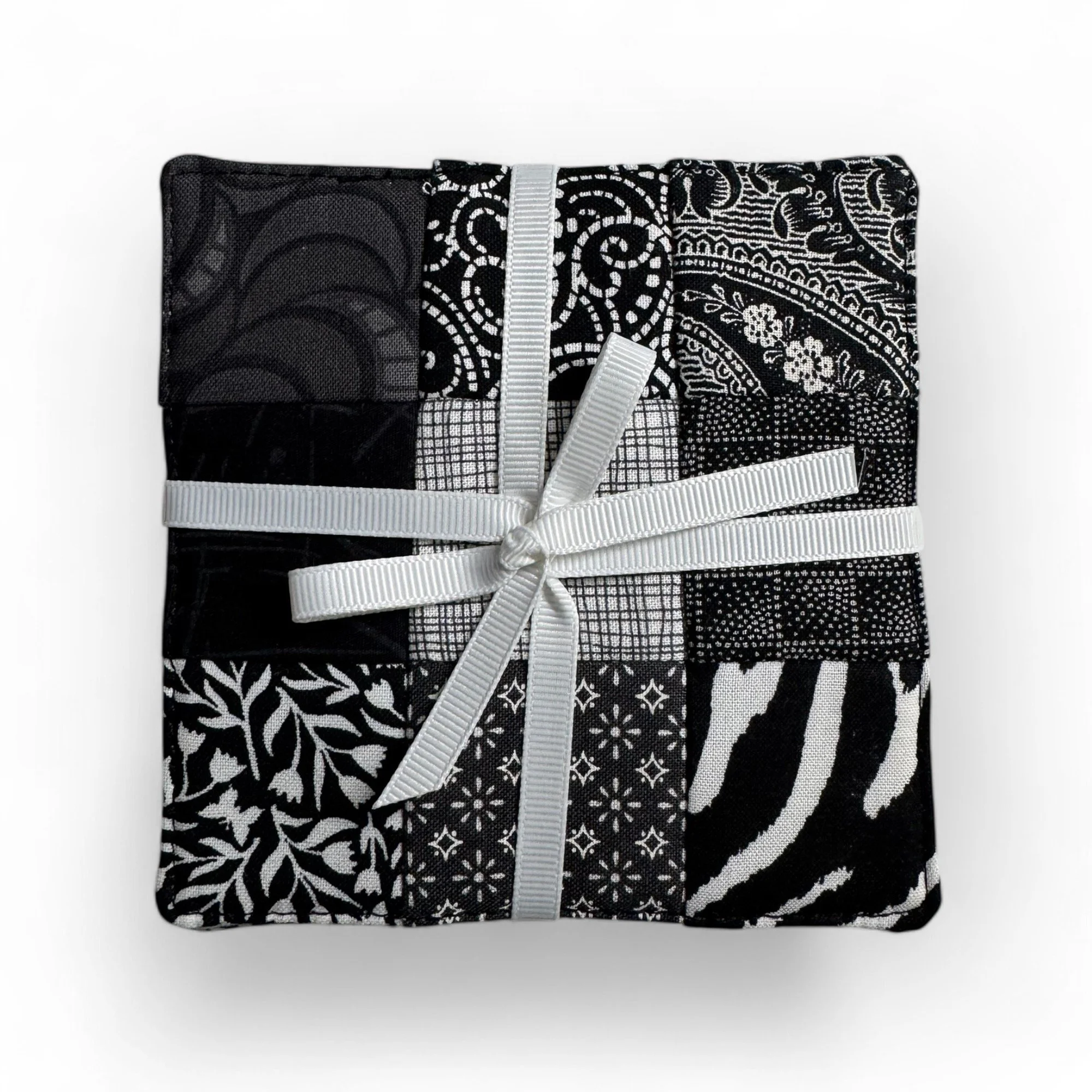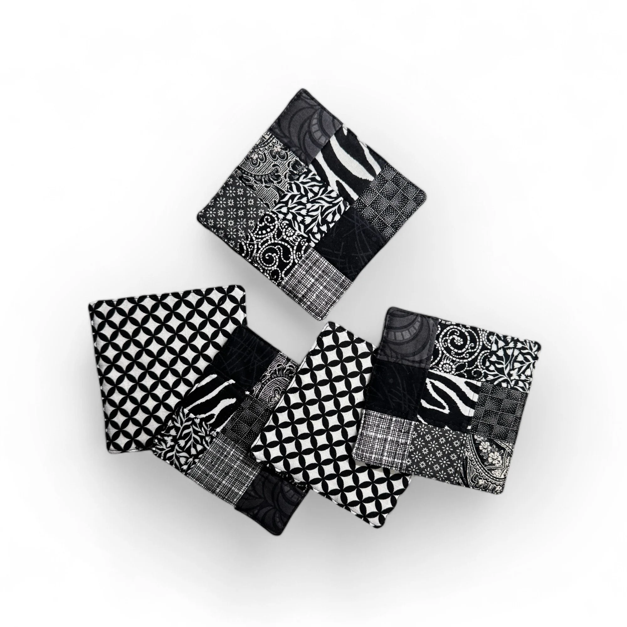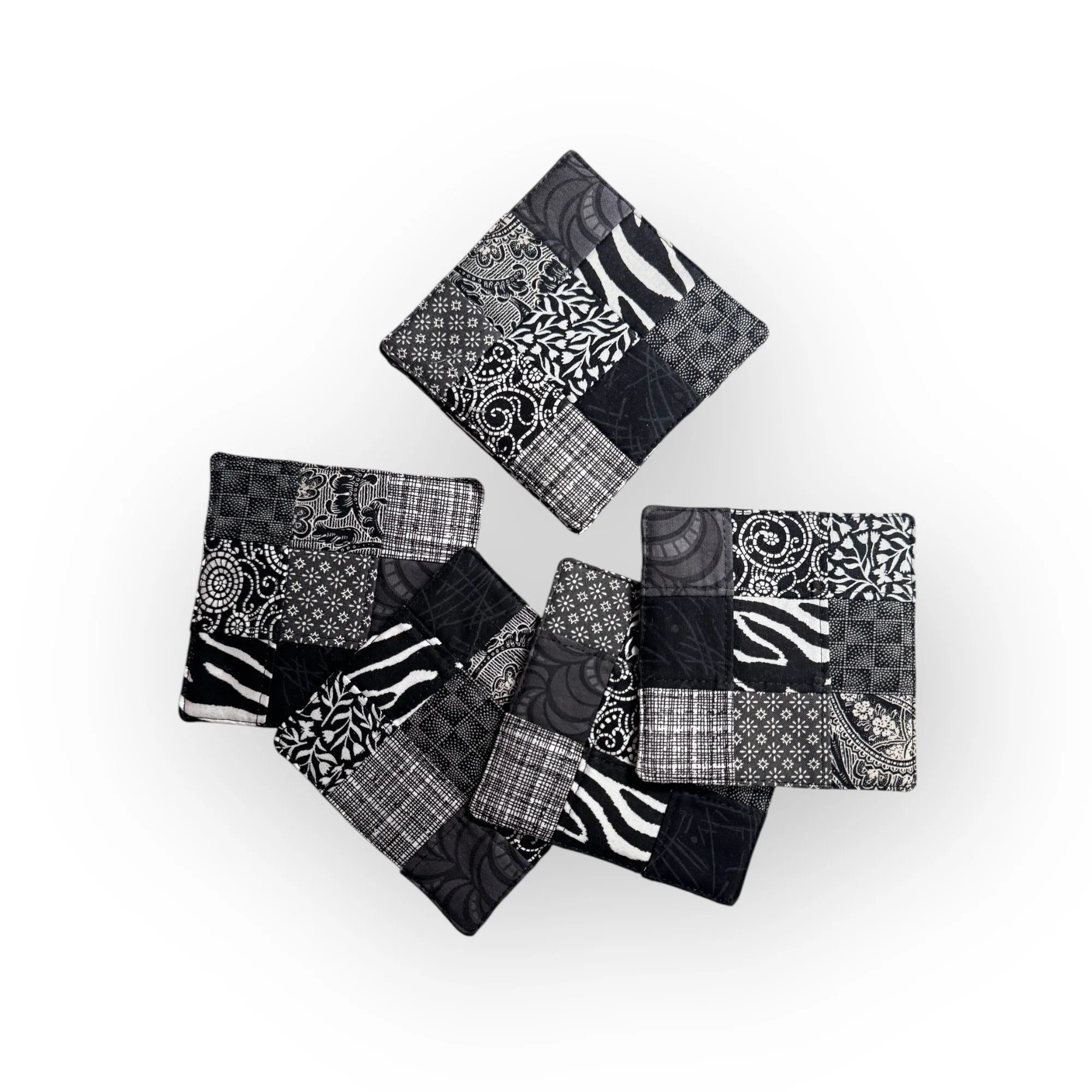 This patchwork style fabric coasters features a distinct and unique shimmery look with a wonderfully smooth feel. These coasters are completely washable, ensuring they maintain their beauty over time, and can also be easily ironed for optimal presentation. They are lightly quilted, which adds an extra layer of character and charm. This lovely set comes with four coasters, and each backing fabric displays a different vibrant color, ensuring variety and visual interest. Each coaster measures 4 x 4 inches, making them truly a modern, relaxed, and stylish addition to elevate your dining or hosting experience.